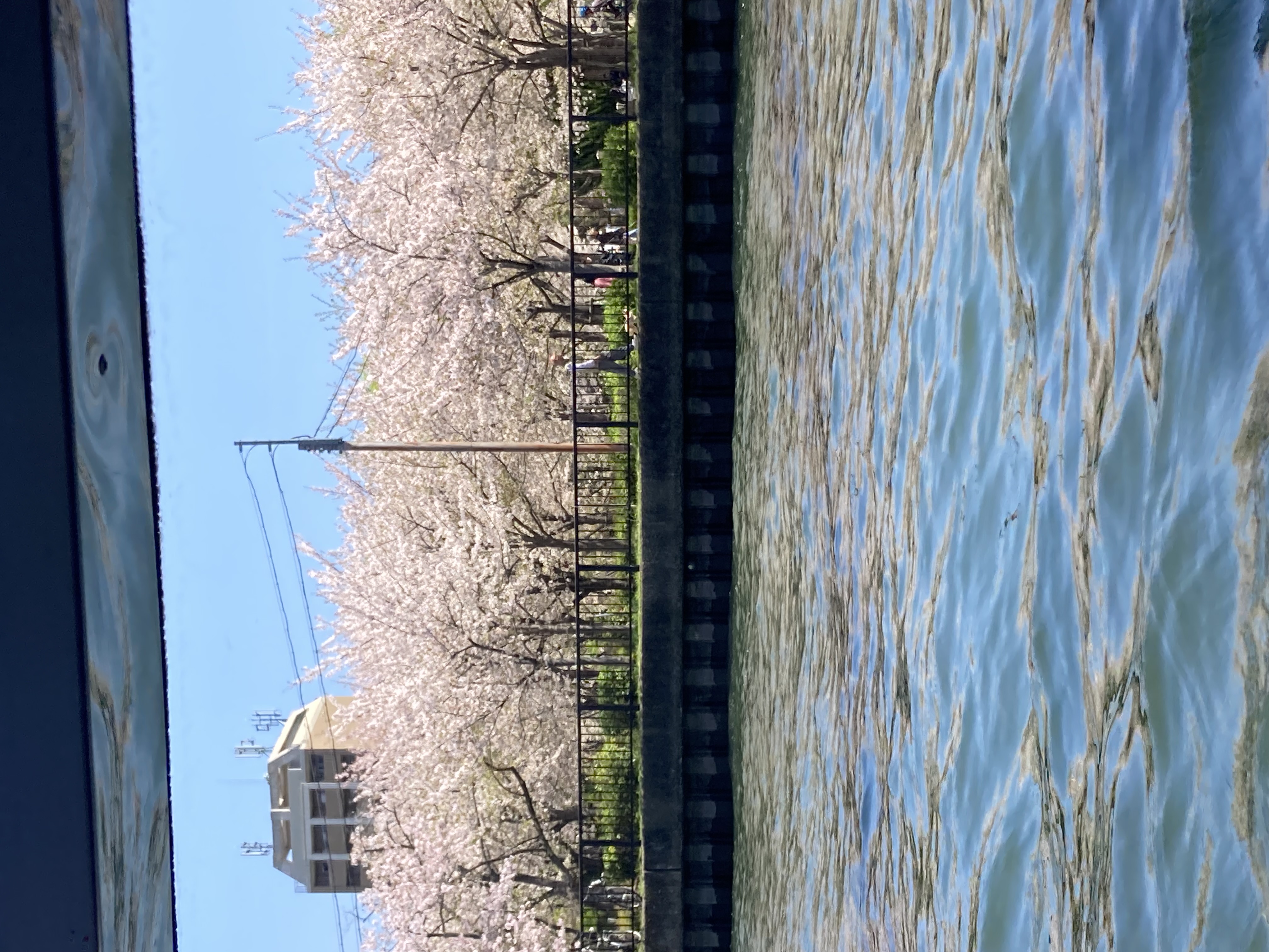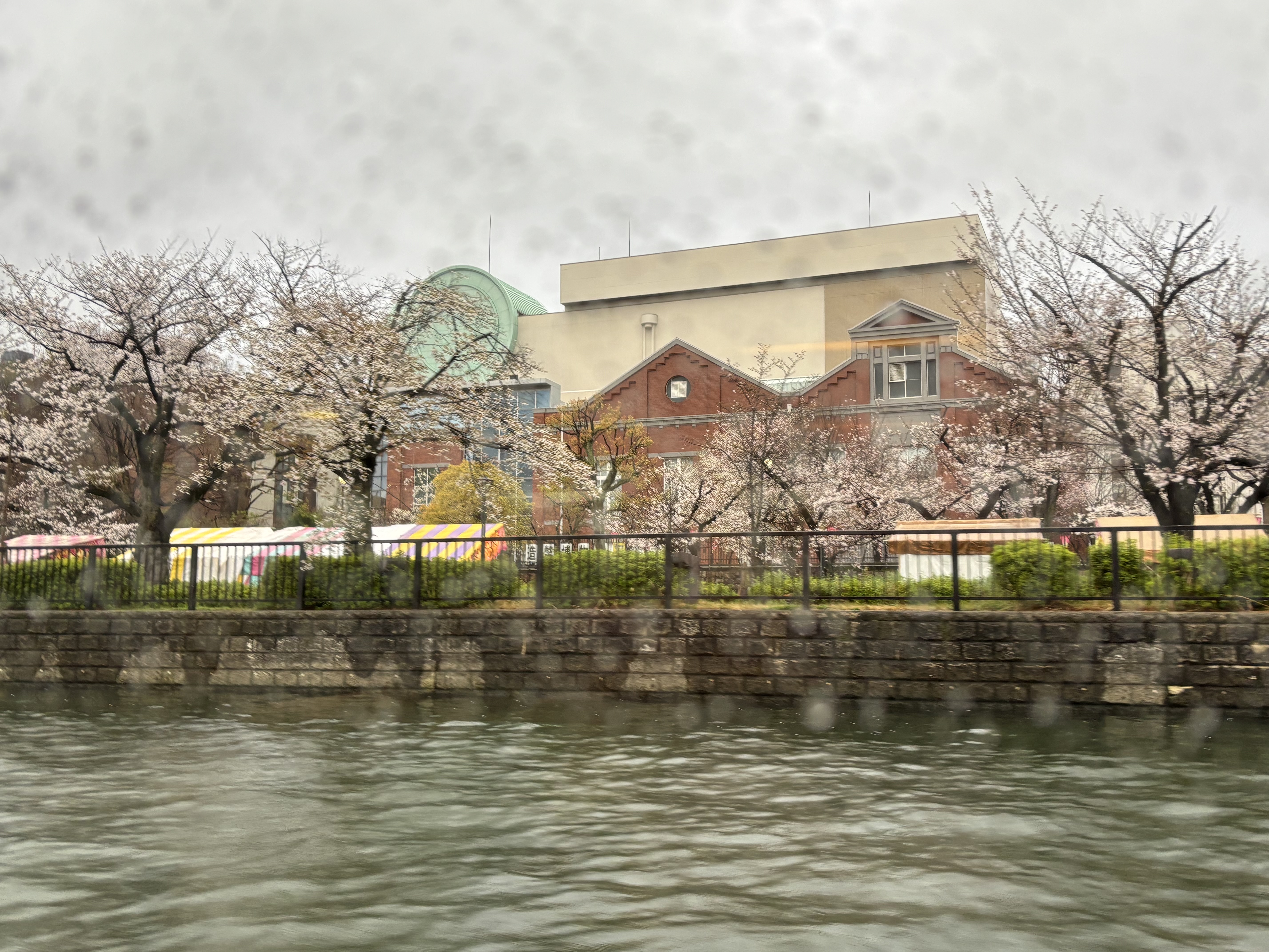 大阪市内を流れる、大川(旧淀川)の水面を滑るように走るアクアライナー。 船内からは、いくつもくぐる橋や、桜シーズンならではの風景をお楽しみください。